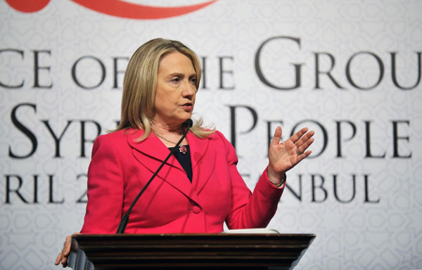 US Secretary of State Hillary Clinton speaks during a news conference at the "Friends of Syria" conference in Istanbul April 1, 2012. [Photo/Xinhua] |