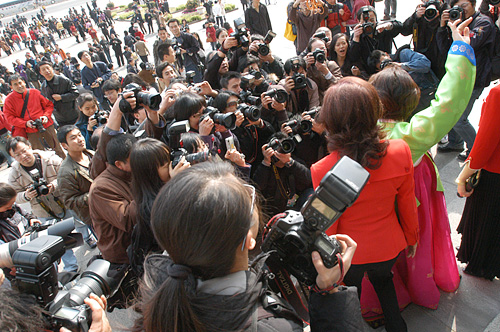 會(huì)后委員們在人民大會(huì)堂留影 2008-03-16 08:32